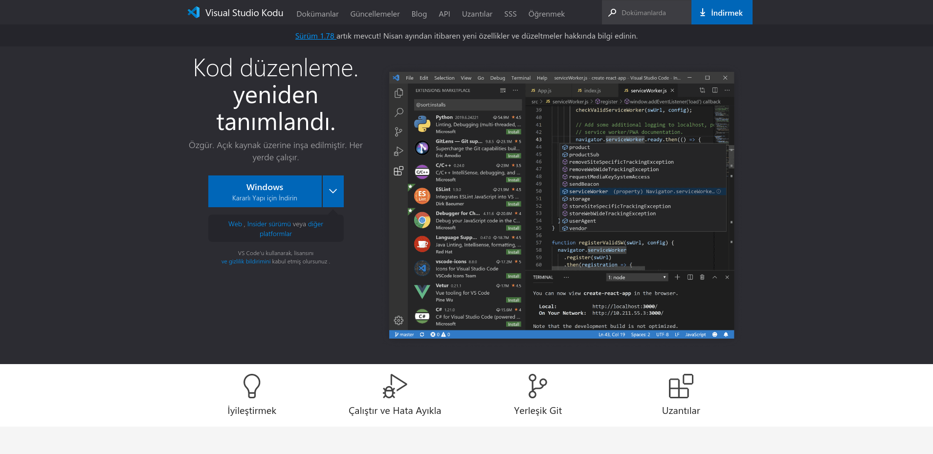 Sağ altta yer alan editörümüzü kullanarak derslere devam etmenizi öneririz. İlk başka Visual Studio Code kurulumu uğraştırıcı olabilir ve derslere devam etmeniz için gerekli değildir. Sizlere tavsiyemiz eğitim serimize devam edip HTML hakkında yeterli bilgiye sahip olduğunuzu düşündükten sonra veya tüm eğitim serimizi tamamladıktan sonra gerekli kurulum işlemini tamamlamanızdır. HTML, CSS ve JavaScript öğrenmek için Visual Studio Code kurmanıza gerek yoktur. Kurulumu göstermekteki amacımız bilgisayardan kodlama yapmayı merak edenler için bir rehber oluşturmaktır. Tabii ki ileride öğrendiklerinizle birden fazla sayfadan oluşan projeler yapmak için Visual Studio Code kurulumunu yapmanızı tavsiye ederiz.