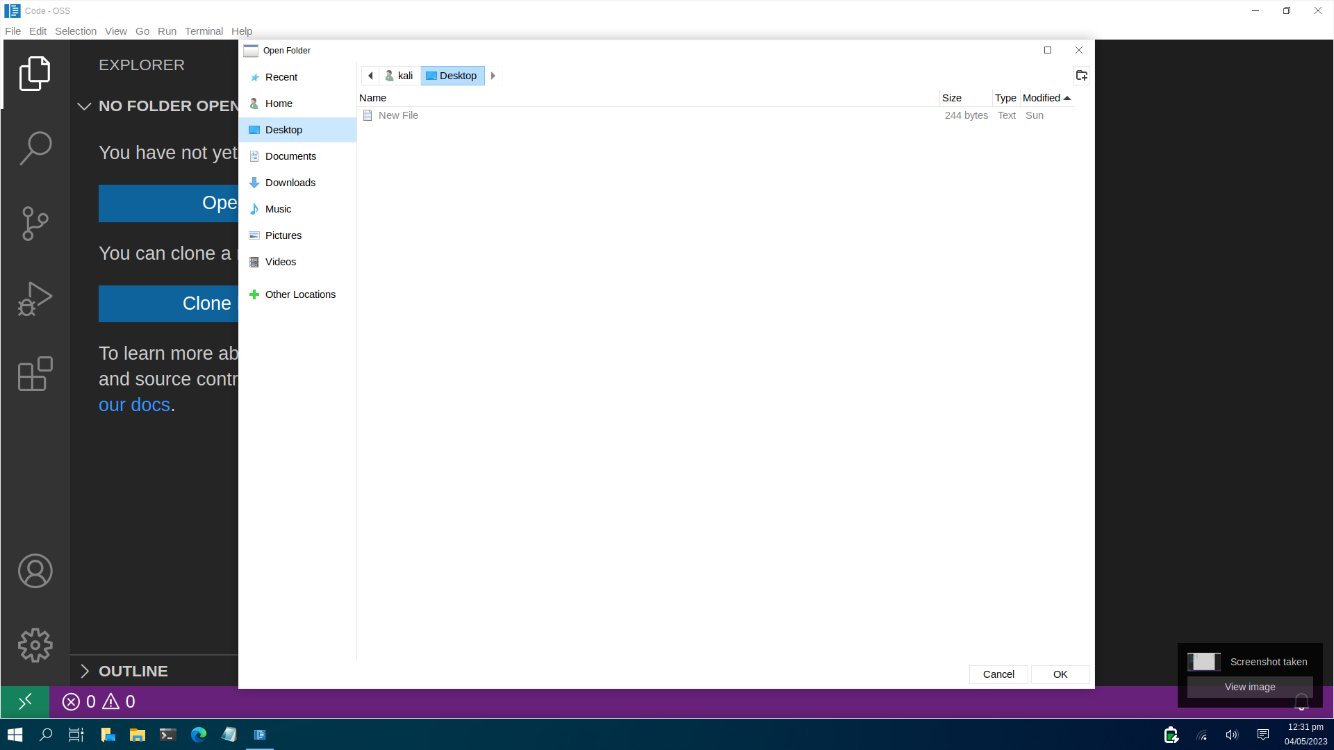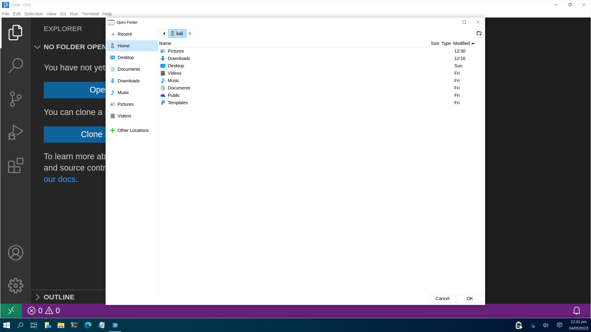 Ardından "Open Folder" butonuna tıklıyoruz.